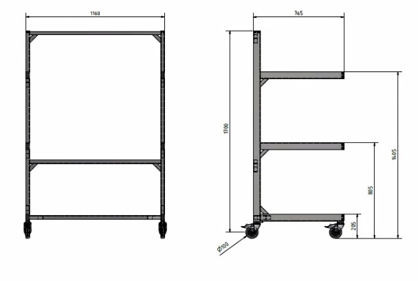 feststehend, lichte Fachhöhe ca. 75 cm, Vollgummiräder Ø 125