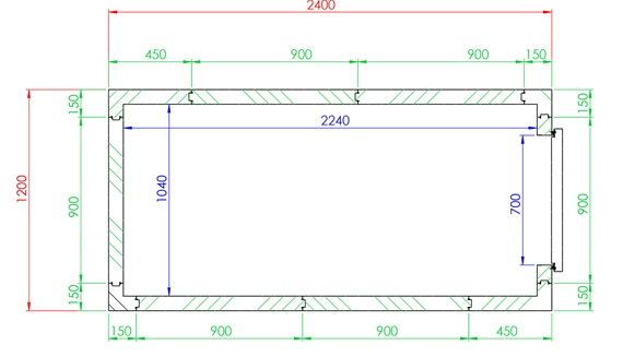 1200x 2400x 2410 mm hoch