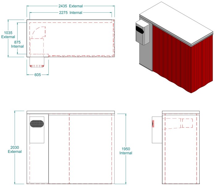 Leichenkühlzelle mit Rolltoröffnung in 80 mm