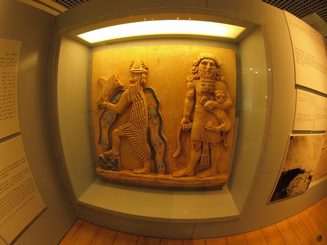 | Bahrain Museum relief | Bahrain Museum Alltagsszene nachgestellt |