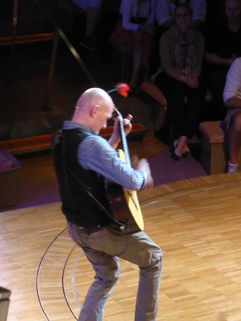 | Ein Mann wie eine Wundertüte: Klaus Renzel Klaus Renzel verbindet in einzigartiger Weise virtuoses Gitarrenspiel mit Bewegungsillusionen. Er kombiniert visual Comedy mit klassischer Musik. Und er versetzt seine Zuschauer mit minimalistischen Instrumenten ins Staunen. Sein mit lichtem Haupthaar gesegneter Kopf wird dabei zur multimedialen Spielfläche von Kunstformen, die ihresgleichen suchen. Sein Programm „Gitarobatrix“, das er auf Englisch, Spanisch und Deutsch spielt, führte ihn schon zu zahlreichen Musik- und Theaterfestivals auf der ganzen Welt. |