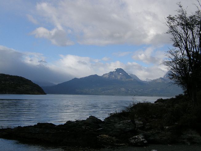 | Die Grenze nac Chilre läuft mitten urch die bahia Lapataia | Grenzgebiet zu Chile Berge in Chile Mount Darwin |